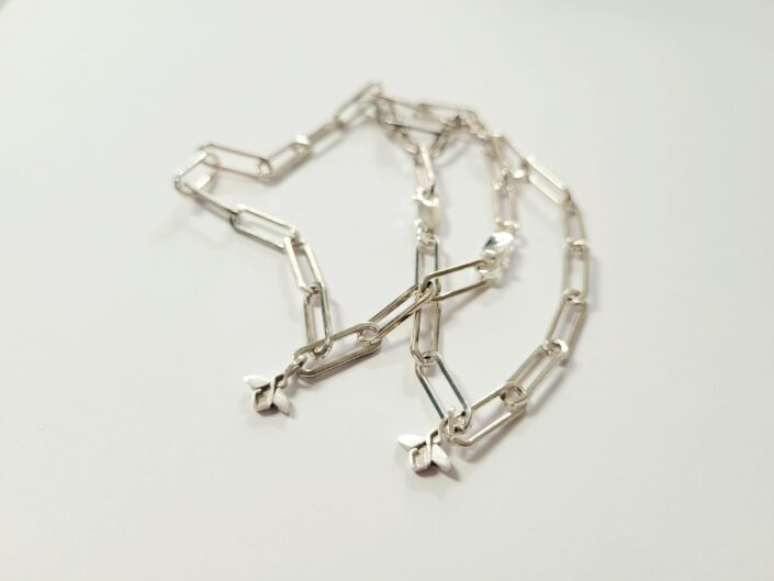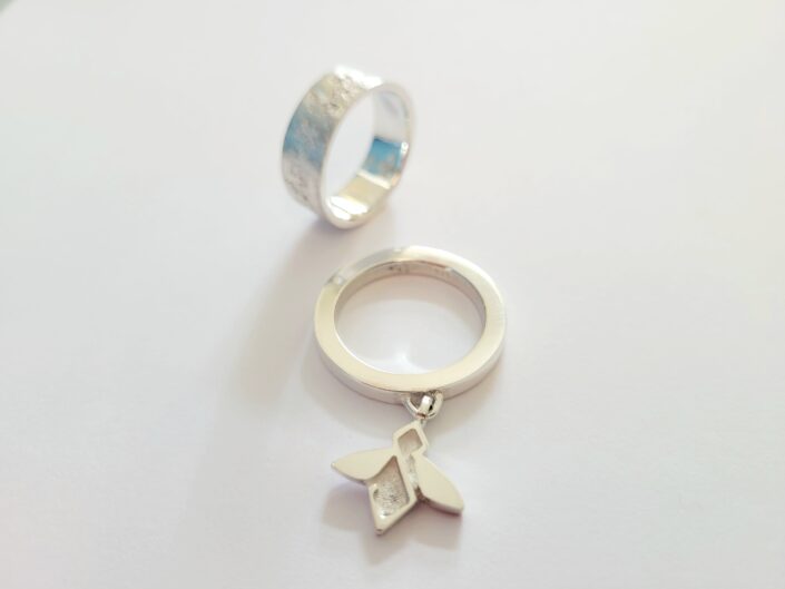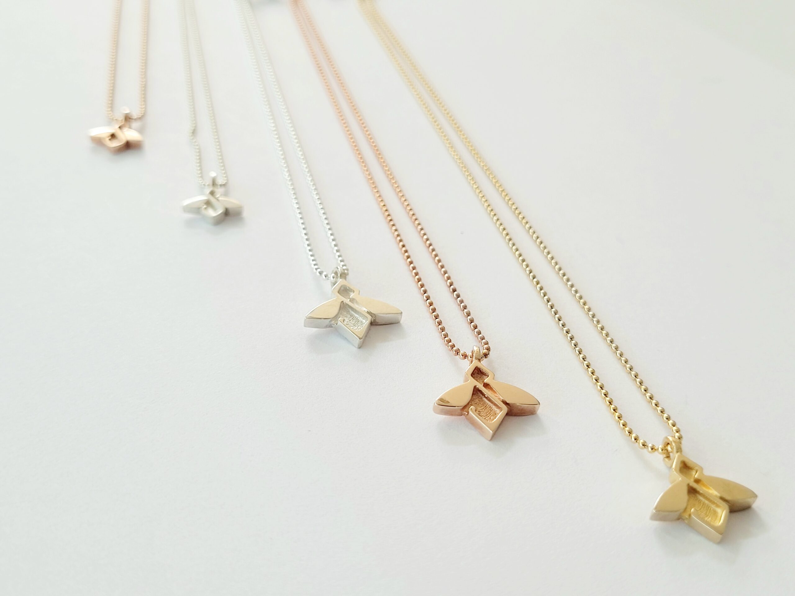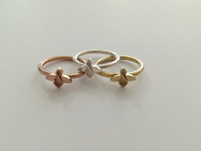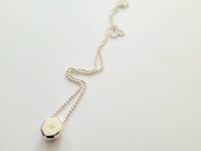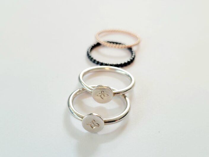 Jedes meiner Schmuckstücke ist mit einer kleinen Biene punziert. Sie symbolisiert das Glück und die Leidenschaft, welche ich in meine Arbeit einfließen lasse. Ich glaube, dass diese positive Energie sich im Schmuck überträgt und an die Trägerin oder den Träger weitergegeben wird.
