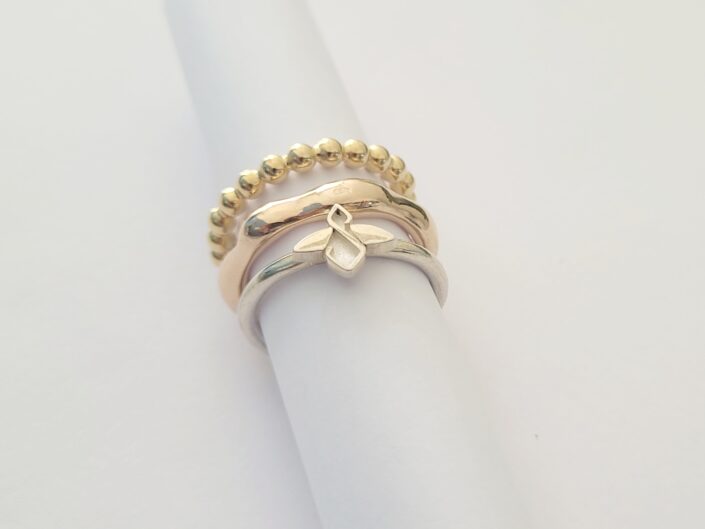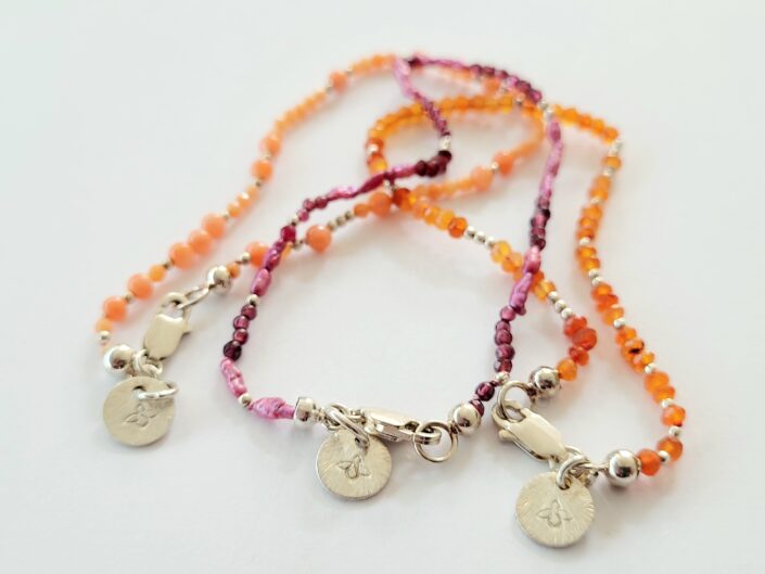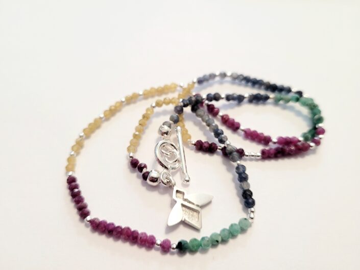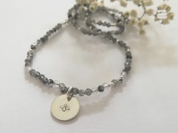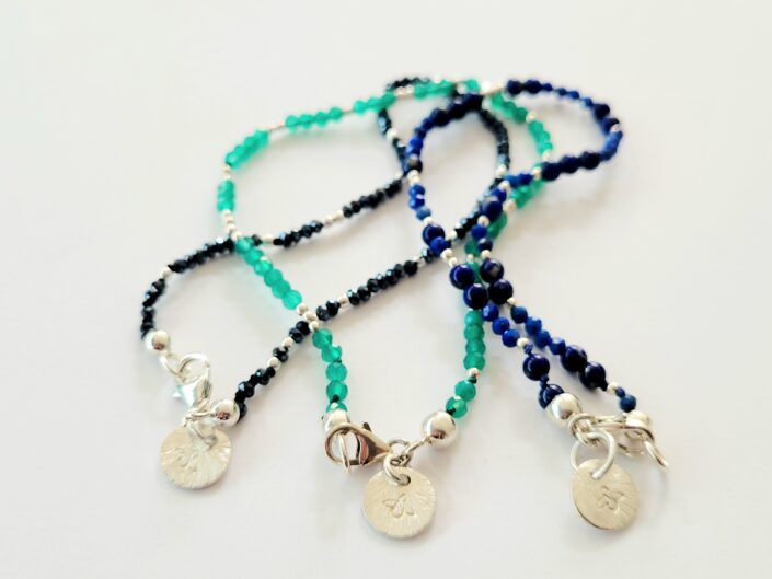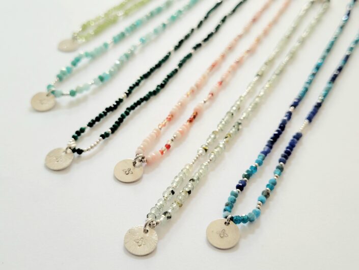 In der Bee-Happy-Line verarbeite ich Sterlingsilber in Kombination mit verschiedenen Edelsteinen. Einzelne Schmuckstücke werden galvanisch in Gelbgold oder Rosegold veredelt. Sie lassen sich untereinander wunderbar spielerisch kombinieren. Jedes Schmuckstück ist durch die Biene unvergleichlich.