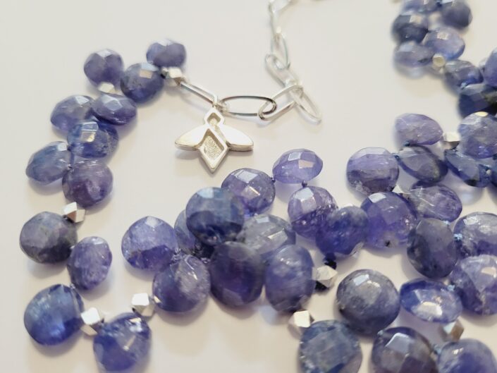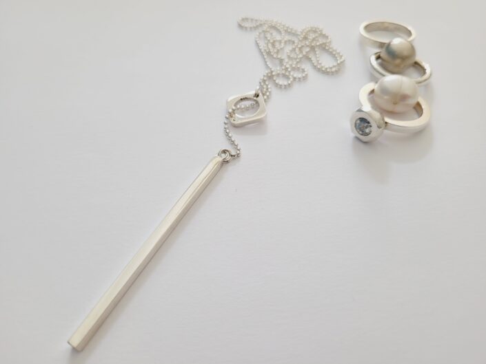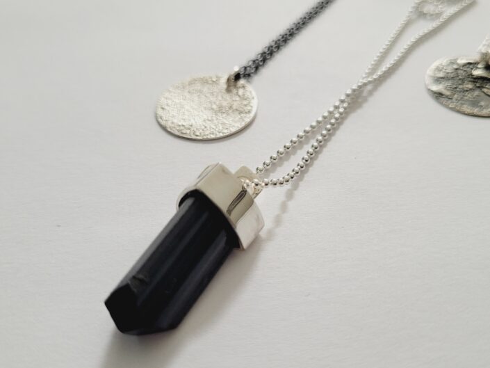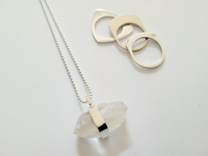 Ich kombiniere in meiner eigenen Sterlingsilberkollektion Edelsteine, Perlen und andere Materialien, wie z. B. Lava oder Holz miteinander. Die Edelsteine und Perlen werden von mir persönlich ausgesucht und nur von vertrauensvollen Händlern bezogen.